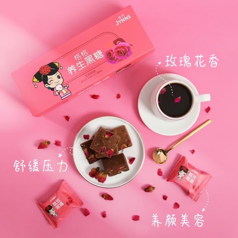 JYNNS Brown Sugar with Rose is made from natural sugarcane from GuangXi, China through traditional technology. Unlike refined sugar, JYNNS Brown Sugar undergoes less processing and therefore retain higher level of nutrients, such as Calcium, Potassium, Iron, Magnesium and Folic Acid.