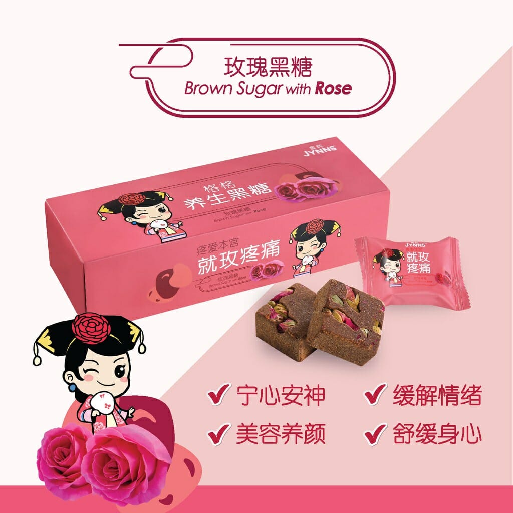 JYNNS Brown Sugar with Rose 金氏格格养身黑糖 - 玫瑰黑糖 24g x 7pcs